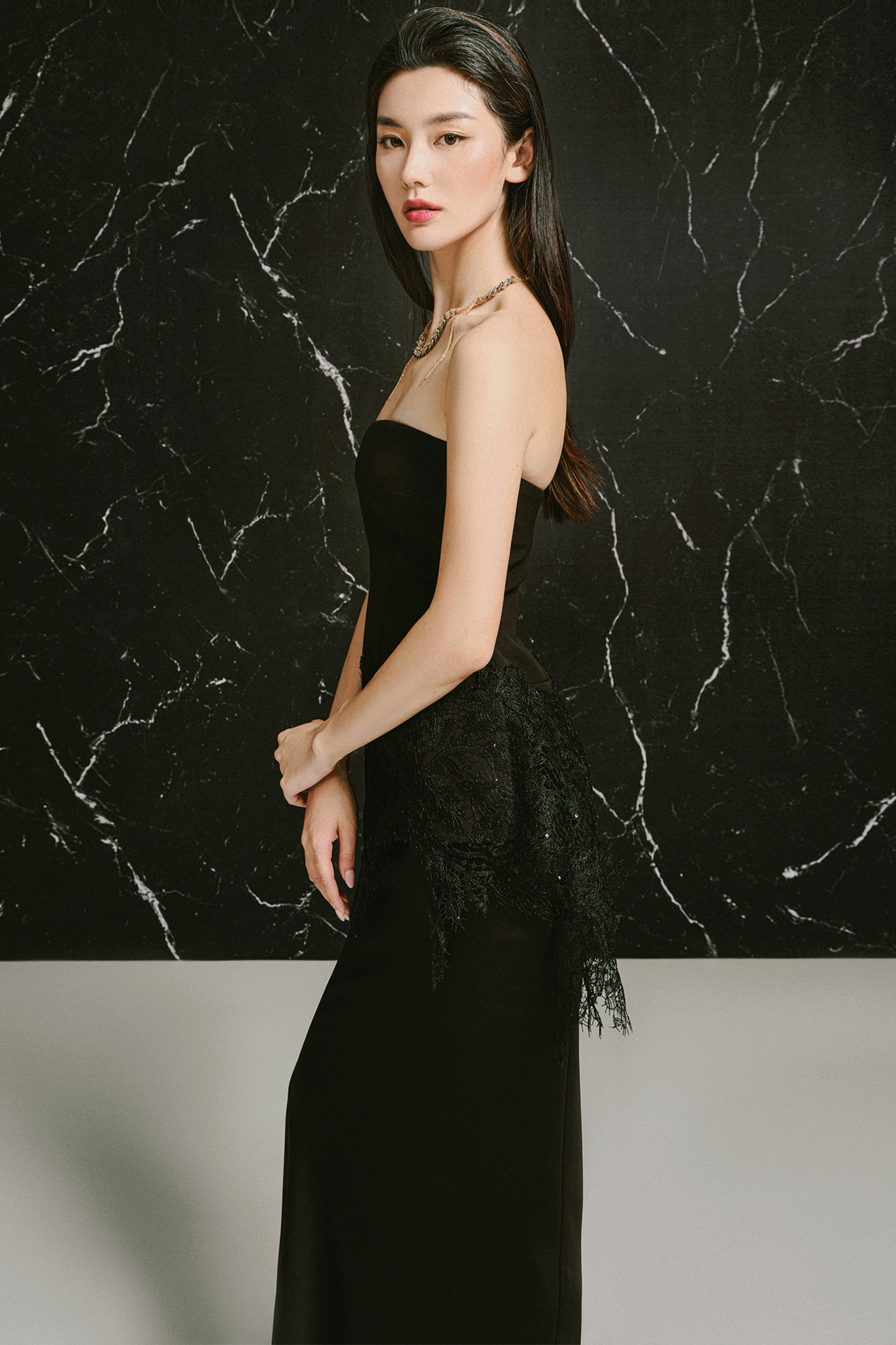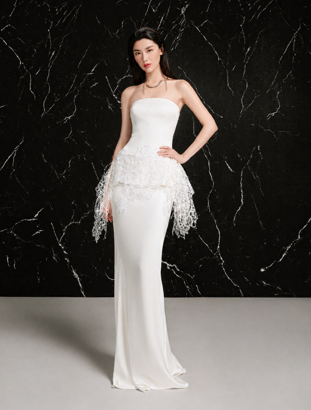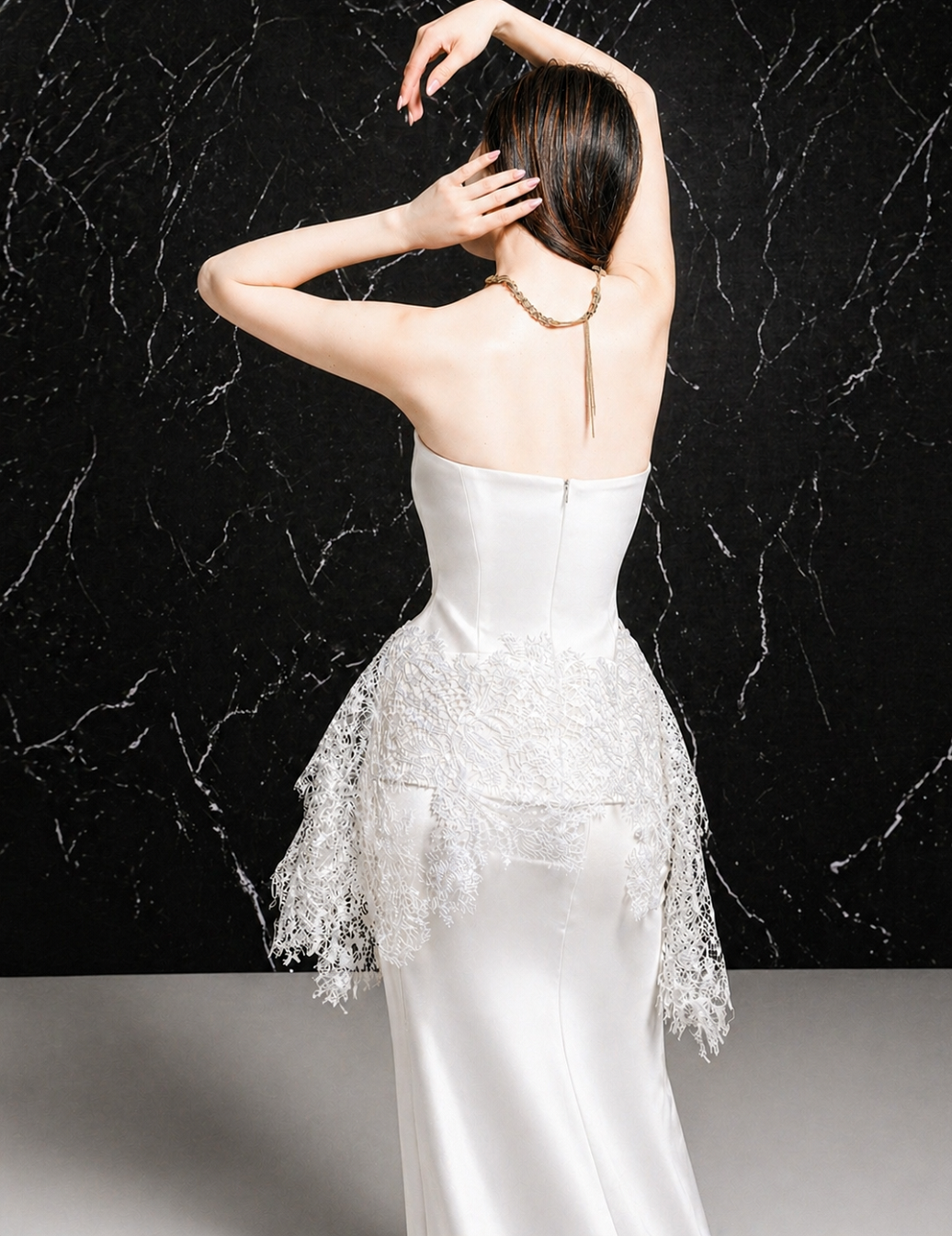 Long satin skirt in a subtle fishtail silhouetteCenter back zipper closureLength for sizes S/M/L: 94.5 / 96 / 97.5 cm