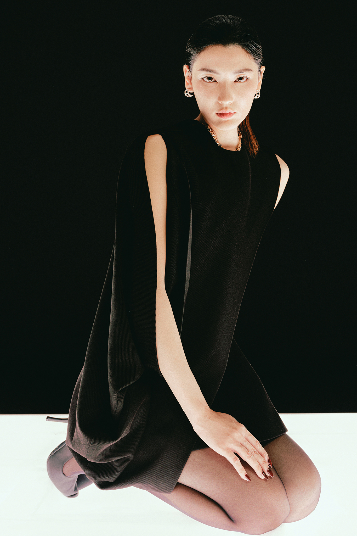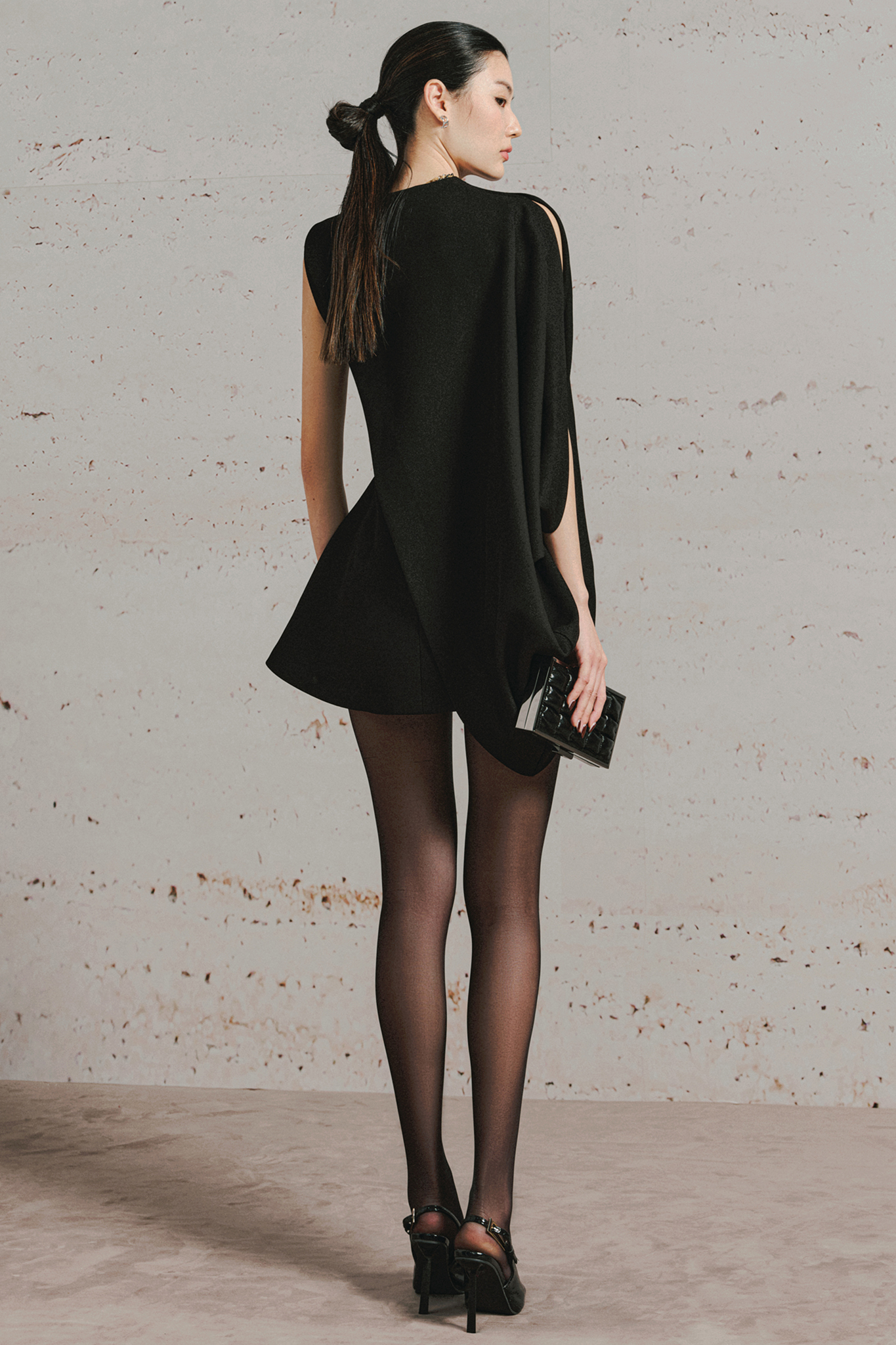 Sleeveless mini dress with a draped overlay from the left shoulder across the bodyZipper closure at the right shoulder and center backCenter front length (S/M/L): 70 / 71.5 / 72.8 cm
