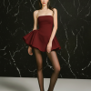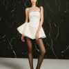 Strapless midi dress with a lace-up back and self-tie bow to define the waist over flared skirtHidden zipper at the lower back Central front length on size S/M/L: 106 / 107.5 /109 cm